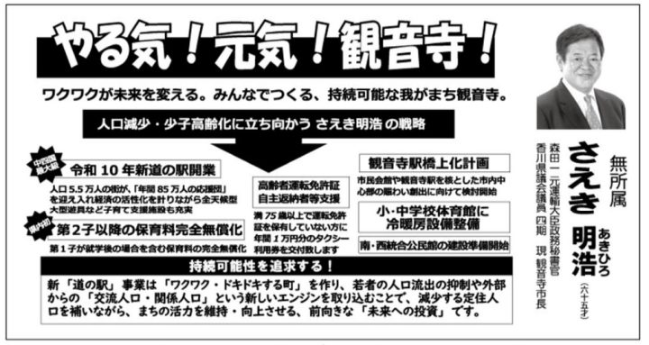 香川県観音寺市長選挙 11月16日投票 立候補者一覧はこちら>>