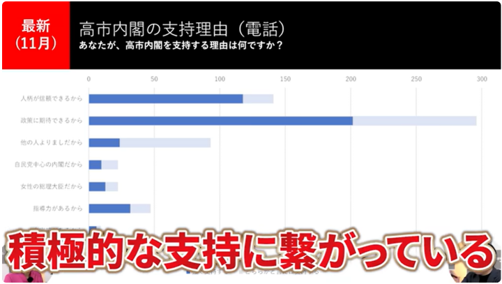 加えて、米重氏はこの1カ月間に「高市さんの露出が非常に多かったことはやっぱり影響している」と説明します。露出の方法にも様々な種類がありますが、高市内閣にとっては現時点での国会質疑や外交イベントに関する露出がポジティブに働いている状況だといいます。