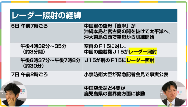 ちょっとこれ細かい経緯の整理と、レーダーの照射の意味をざっと僕が説明します。