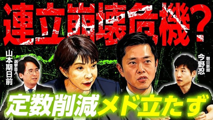 今野記者:高市さんも総理として国会に強行指示はできないだろうし、野党の方が企業・団体献金を先に審議すべきだっていうのは一定の合理性はあるじゃないですか。定数削減て後から出てきた話よりこっちが大事だろうっていう話は。そうなると、維新はこれ以上強引に行けんのかなって感じしますけどね