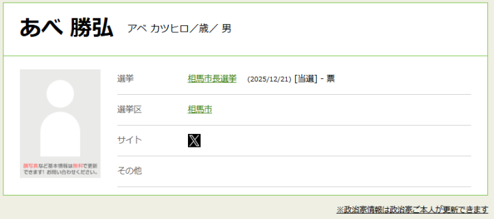 選挙ドットコムの政治家情報ページには、顔写真やSNSアカウントへのリンクなどを完全無料で掲載いただけます。