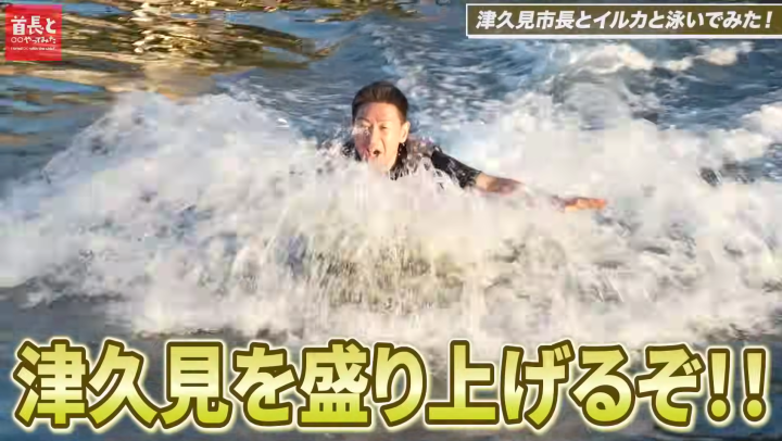 今回の首長と〇〇やってみたは、津久見市の人気スポット「つくみイルカ島」で、「イルカと泳いでみた」!