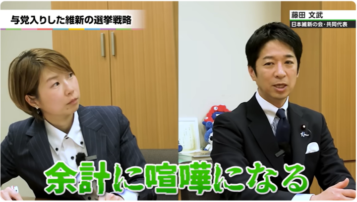 12月27日公開の「選挙ドットコムちゃんねる」には、日本維新の会共同代表の藤田文武衆院議員がゲストに登場!昨年10月、自民党との連立を合意した日本維新の会の政策実現の進捗度は?そして、次期衆院選に向けた自民党との連携はありうるのか?藤田共同代表に伺いました。