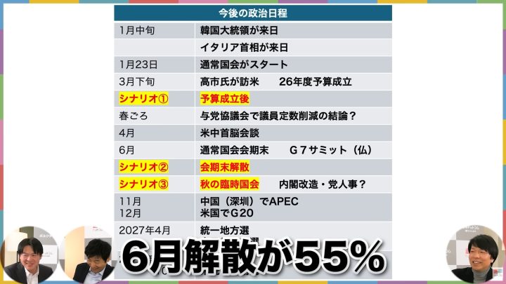 今野記者: シナリオ2(6月会期末解散)の確率は、お二方は何パーセントくらい?