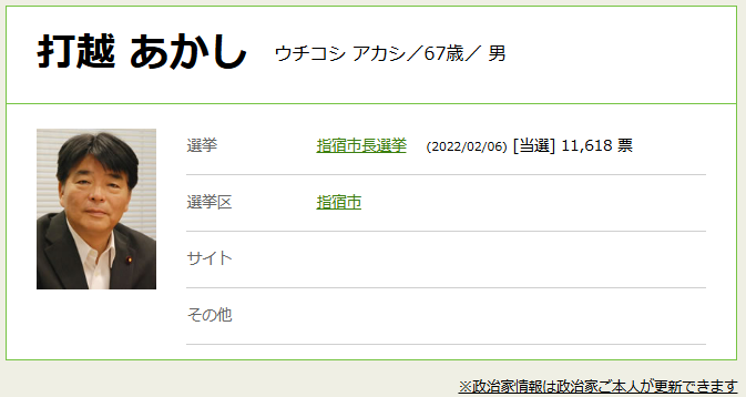 打越氏は、鹿児島県指宿市出身の67歳。九州大学経済学部を卒業後、松下政経塾などを経て、1991年から鹿児島県議会議員を4期、衆議院議員を1期務めました。2022年からは指宿市長に初当選し、現在2期目です。