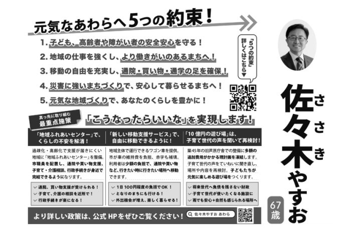 佐々木氏は以下の政策を掲げました。