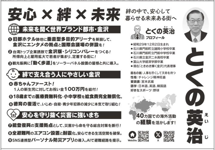 石川県金沢市長選挙 3月8日投票 立候補者一覧はこちら>>