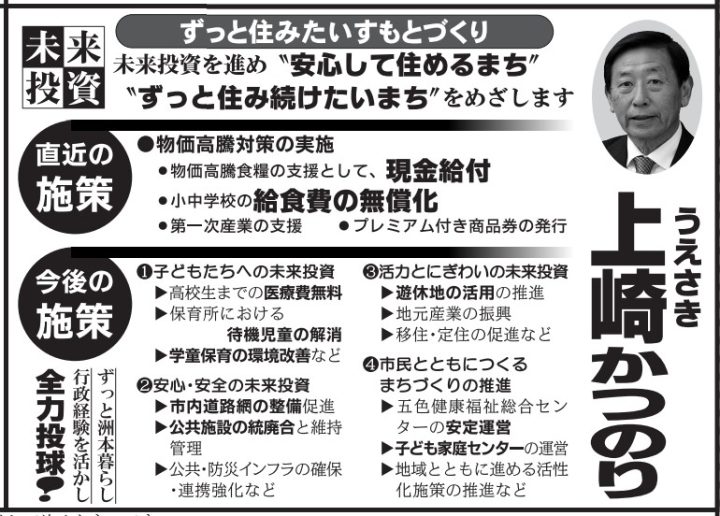 上崎氏は以下の政策を掲げました。
