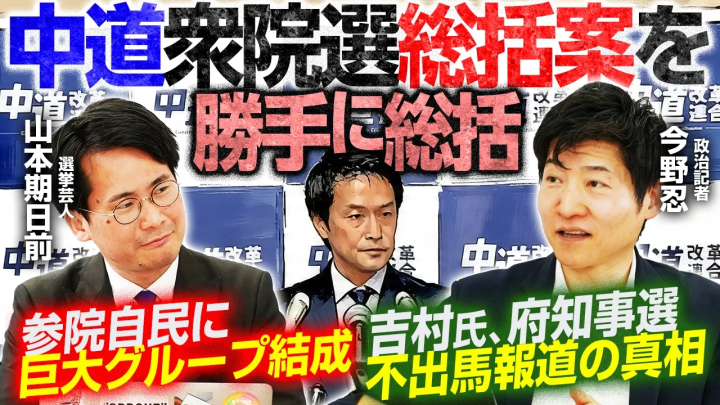 4月15日公開の「選挙ドットコムちゃんねる」では、中道改革連合が発表した衆院選総括案を取り上げました。中道はゴールデンウィーク明けの総括まとめを予定している中、今回発表された素案では立憲民主党出身者から相次いだ落選の要因や党名の変更検討などが盛り込まれました。党の命運を左右する今後の方針について、政治ジャーナリスト・今野忍氏とMCの選挙芸人・山本期日前氏が議論を交わします。