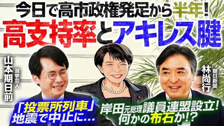 4月21日公開の「選挙ドットコムちゃんねる」では、2026年4月21日で発足から半年を迎えた高市政権の振り返りと今後を朝日新聞・DEEPPOLITICS編集長兼編集担当補佐役の林尚行記者とMCの選挙芸人・山本期日前氏が振り返りながら今後を展望。驚異的な支持率と衆院選勝利を経て、高市政権は「第4フェーズ」へと突入したと解説する林記者に、「高市カラー」と言われる政策の動向などについても伺いました。