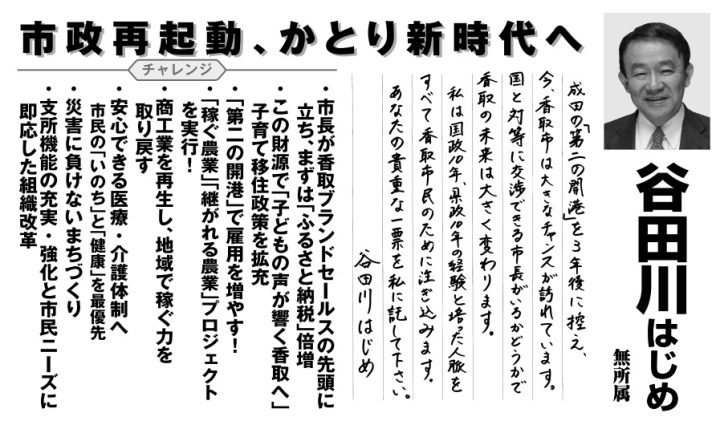 千葉県香取市長選挙 4月26日投票 立候補者一覧はこちら>>