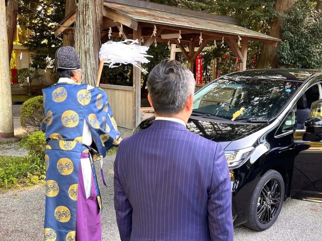 新しいリースの車となりましたので、伊勢市小俣の官舎神社で交通安全祈願もしていただきました。