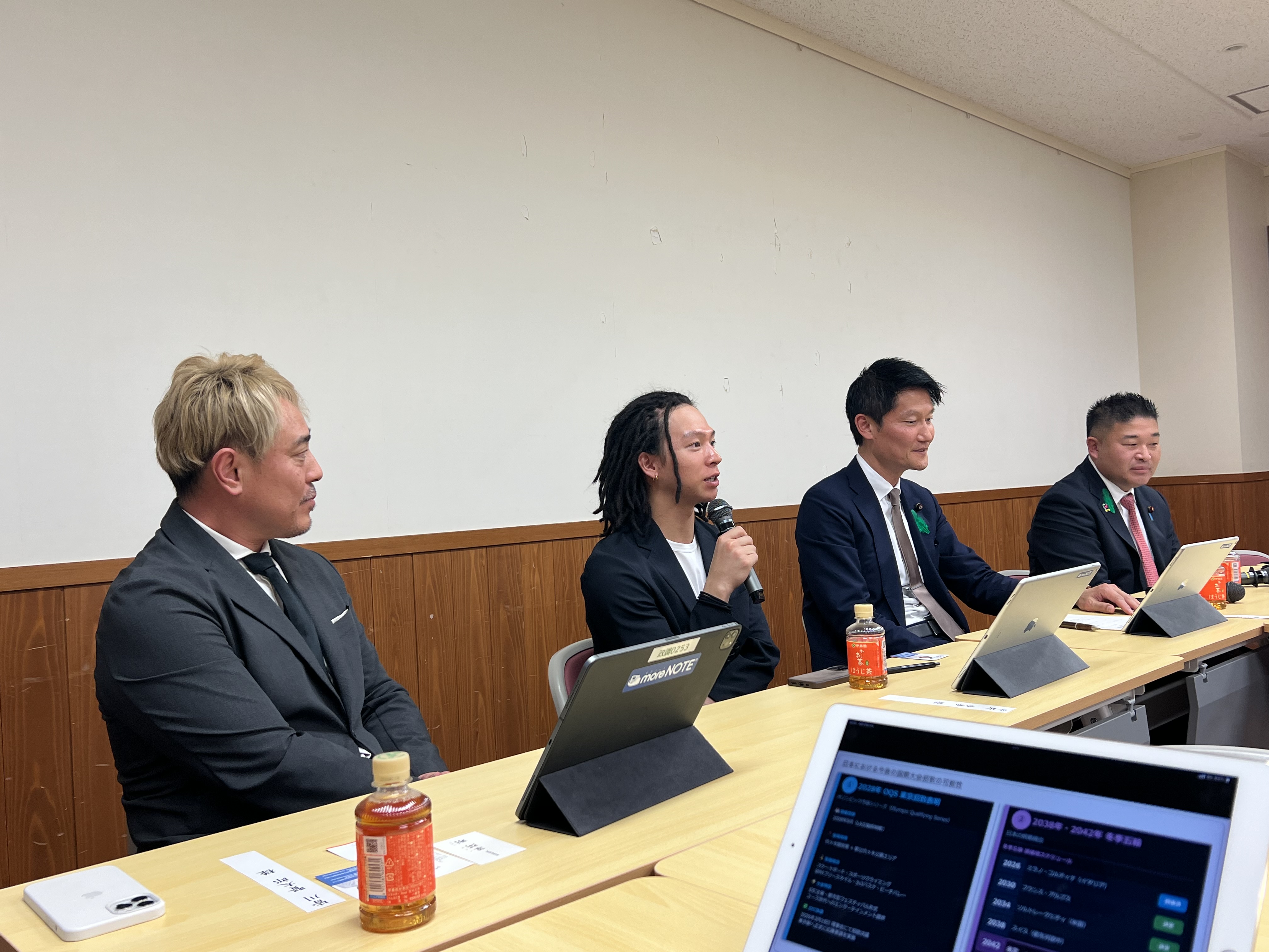 自民党の調査会に、私が尊敬する日大の後輩が出席して下さいました。座長の朝日健太郎参議院議員から、平野歩夢さんが来ますよと言われて、この日を楽しみしておりました。皆川賢太郎さんと共に参加され、冬季競技の課題や将来展望を講演頂きました。