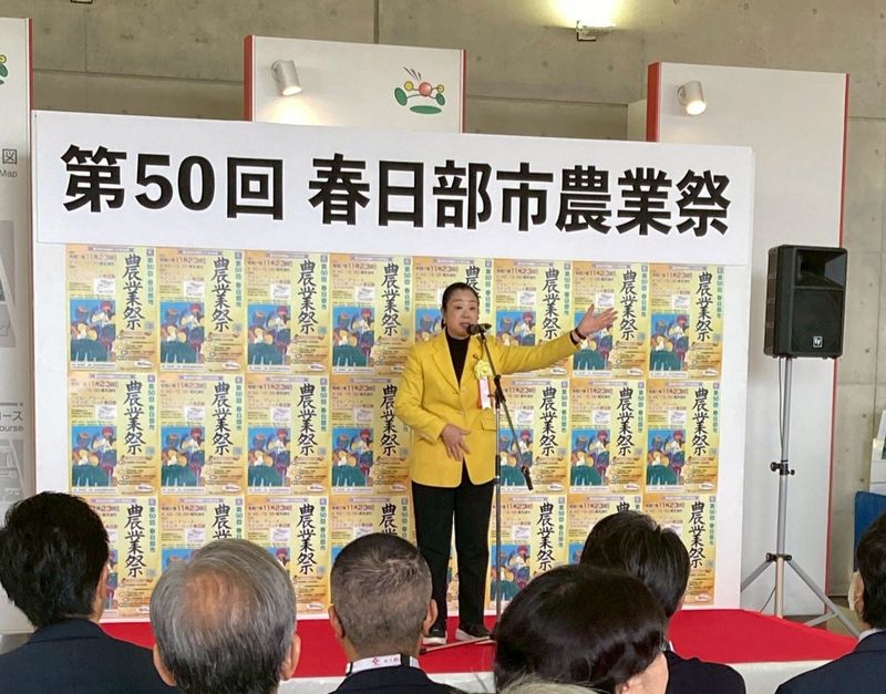 ホーム>政党・政治家>土屋 品子 (ツチヤ シナコ)>11/23にアイル・アリーナ・ウイング・ハット春日部で行われた第50回春日部市農業祭で挨拶をさ...
