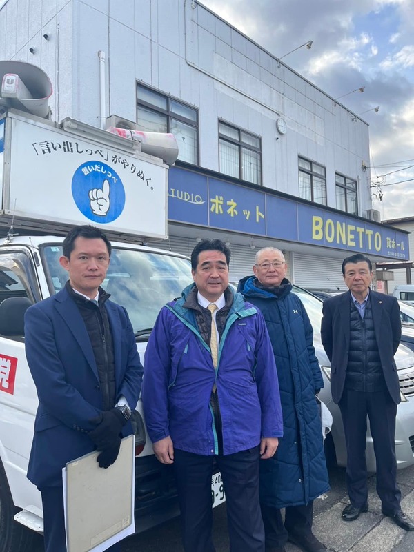 凍える寒さの中にも関わらず、支援者の方々が豚汁とお餅を用意してくださり、身体だけでなく心温まるひとときを過ごしました。皆さまの温かい声援や手を振ってくださる姿に、感謝の気持ちでいっぱいです。