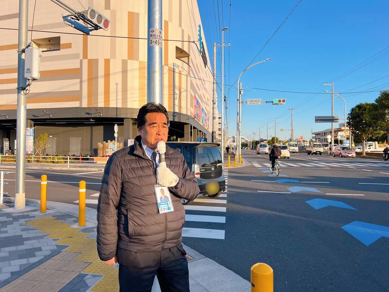 ホーム>政党・政治家>さかい 学 (サカイ マナブ)>下飯田駅の一角をお借りして朝のご挨拶。