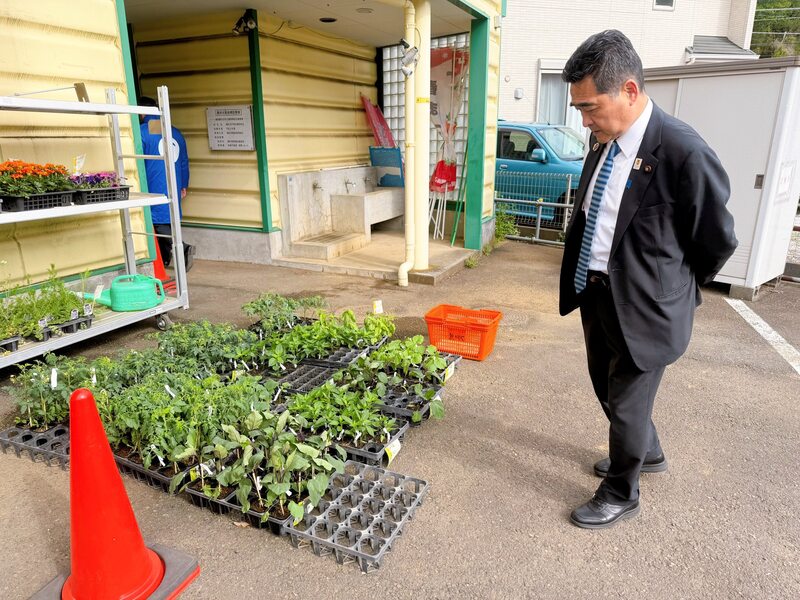 駅頭終わりにはいつものようにJAハマッ子直売所舞岡やに立ち寄ったさかい学。中に入る前に立ち止まったので何を見ているんだろう?と様子を見ると野菜の苗が🌱