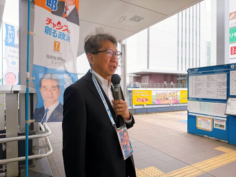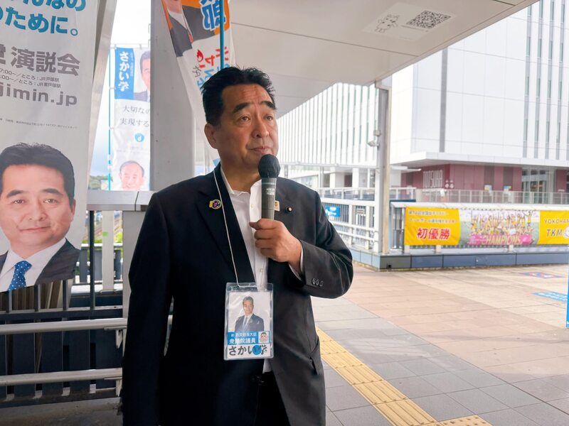 ホーム>政党・政治家>さかい 学 (サカイ マナブ)>戸塚駅西口連絡通路の一角をお借りして朝のご挨拶。
