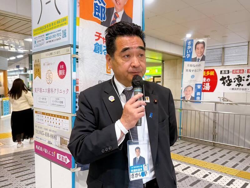 ホーム>政党・政治家>さかい 学 (サカイ マナブ)>東戸塚駅東口の一角をお借りして朝のご挨拶。