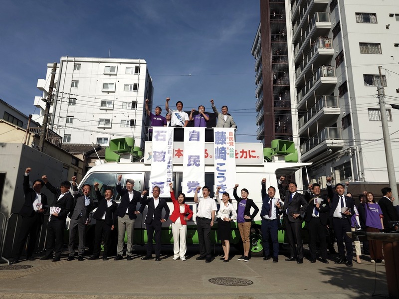 石破茂内閣総理大臣が、すみだ北斎美術館前の緑町公園に21日、都議選の藤崎こうき候補の応援に駆けつけました。
