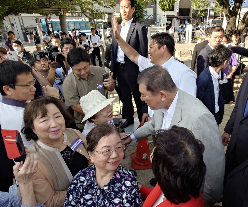 石破総理は演説で、私が取り組んできた「約束手形廃止」などの中小・小規模事業政策にふれ、また、出身の鳥取大学附属中学校が、必ず修学旅行で関東大震災と東京大空襲の犠牲者を供養する東京都慰霊堂を訪れていることを紹介し、このような歴史をもつ墨田区から日本一、安心・安全な街をつくる重要性を訴えました。