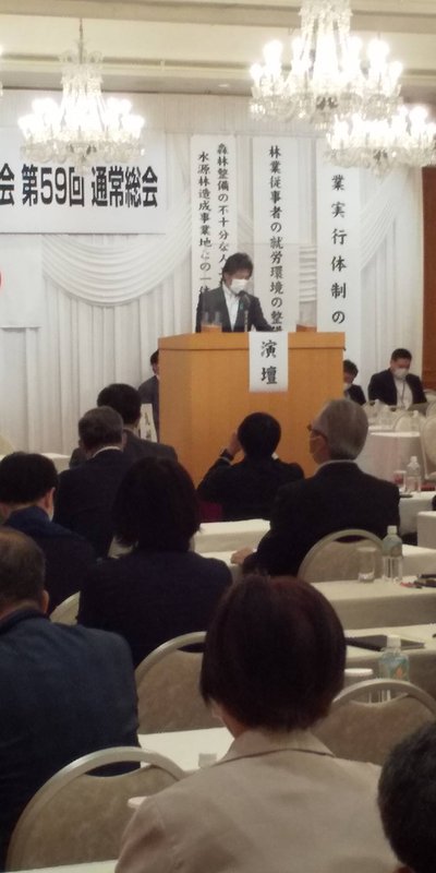 本日、全国水源林造林協議会連合会 第59回総会が行われ、中谷元会長が総理大臣補佐官に就任されたことに伴い、会長代理としてご挨拶させていただき、また議長役を務めさせていただきました。今後も党連合会の重点である「安定的な事業財源の確保」に向け、関係方面に対して要請活動を行い、事業の推進を図ってまいります。