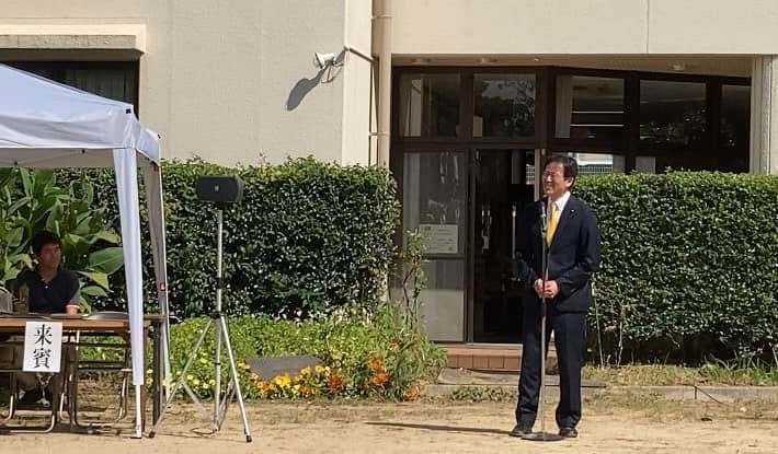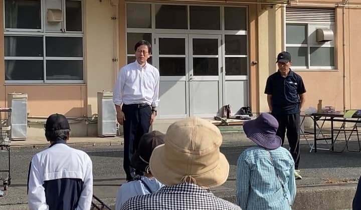 大積校区の秋のグラウンドゴルフ大会の開会式へ。ご挨拶の機会に感謝です。