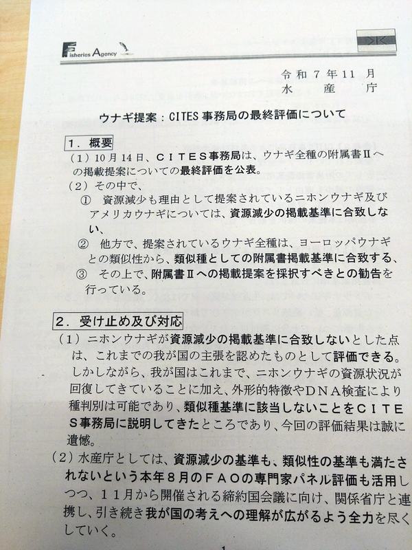 一部国家の誤解により、本来規制対象に入らない日本のウナギが国際条約による規制を受けそうになっている状況をなんとしても打開したいと多くの議員が力を合わせています。