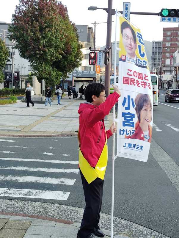 11月14日、門司駅前での朝のご挨拶から。たくさんの激励に感謝します。