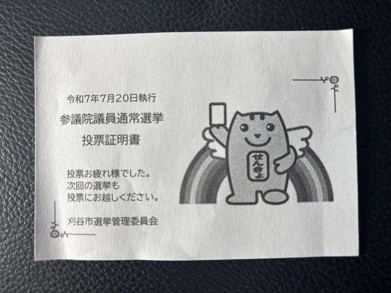 刈谷は、投票済証をもらう慣行が広く浸透している地域なのに、投票済証があまりにも貧相なので、デザインを変えることを提案したい。