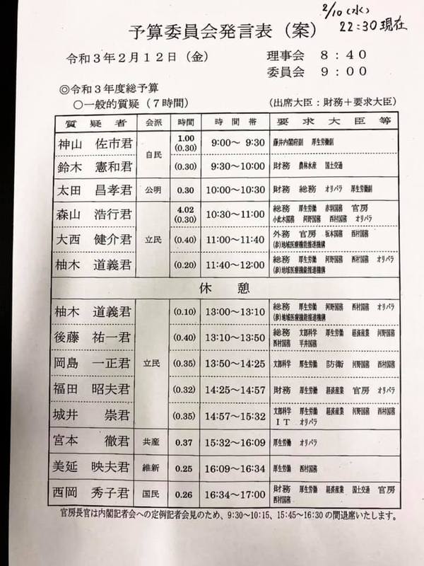 ホーム>政党・政治家>おおにし 健介 (オオニシ ケンスケ)>明日、一般質疑ですが、予算委員会で質問します。