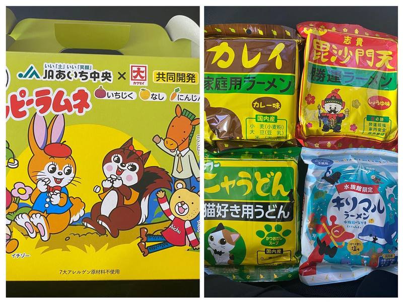 地元産のオリジナル商品。 JAあいち中央コラボの #グッピーラムネ と #キリマルラーメン。 棚尾の金原米穀店では、様々な種類のインスタントラーメンが買えます。