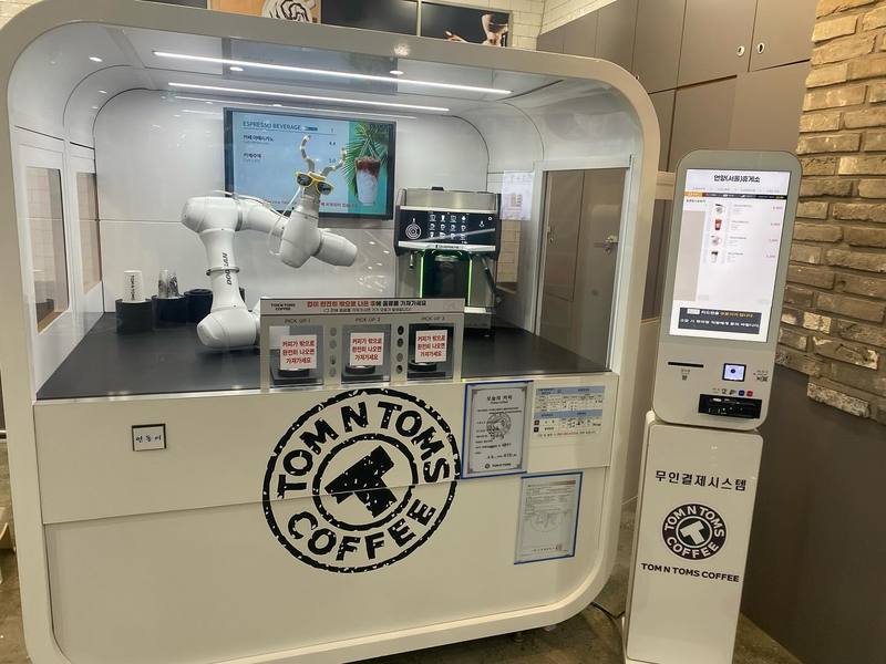 韓国の高速道路のドライブインで見つけたコーヒーの自動販売機。ロボットアームがコーヒーメーカーでコーヒーを淹れるというもので、ありそうだけど日本では見たことない。