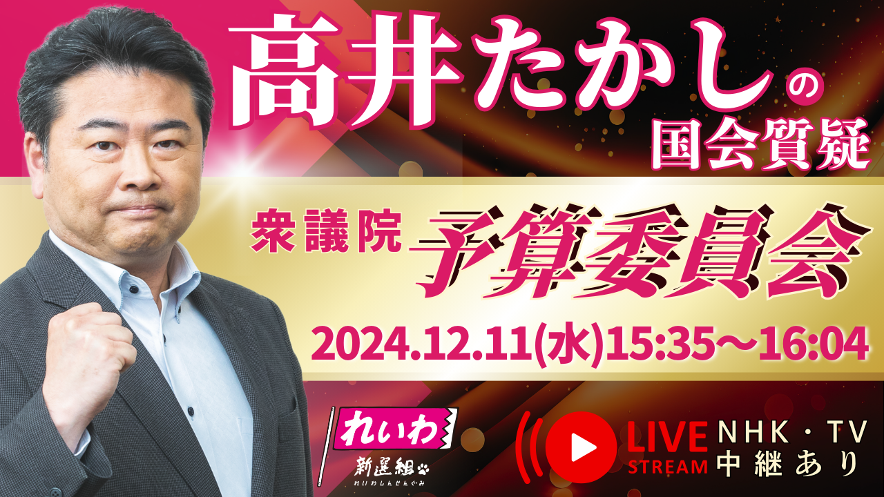 ホーム>政党・政治家>高井 たかし (タカイ タカシ)>【12月11日】国会質問!予算委員会で消費税に関する3つのデマを指摘