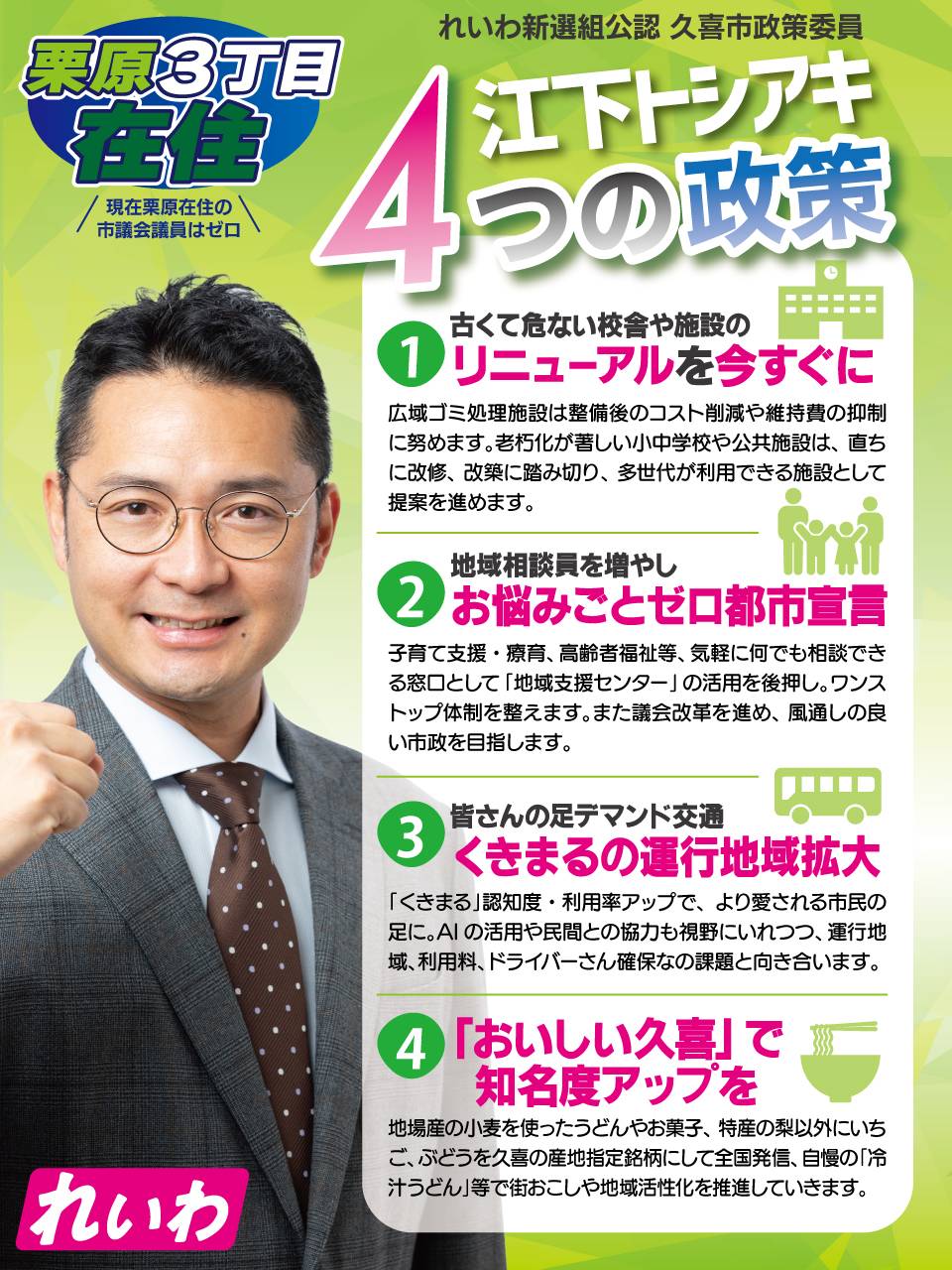 久喜市議会議員選挙は、江下トシアキにあなたの1票をお託しください。【4/19投票日】