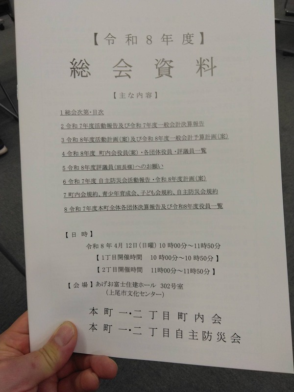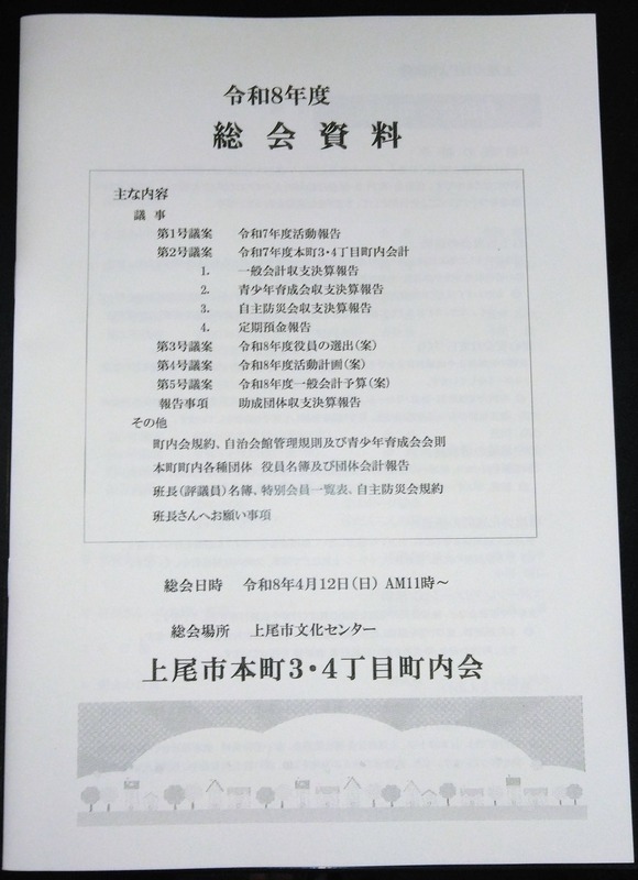 昨日は地元の本町地区1.2丁目と3.4丁目町内会の総会に出席。