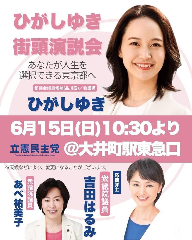 #都議選2025 #都議選 #品川区 #大井町 #あべ祐美子 #吉田はるみ #ひがしゆき #看護師