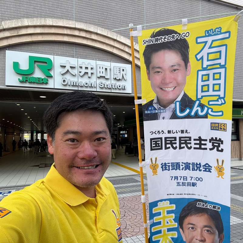 おはようございます。 本日は #大井町駅 からGO! 今の社会課題は少子高齢化などもありますが、「こころの余裕の無さ」から生じていると思う。だからこそ、手取りを増やすやワークライフバランスで経済的余裕と時間的余裕を確保出来るよう政策を前に! #国民民主党 #品川区 #石田しんご