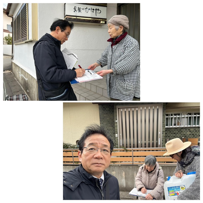 「500万要求対話」で、地元を訪問しました。「夫婦2人で年金は月6万円、物価高騰で、暮らしていけない」「ガソリン代が高騰し、自営業で経営が苦しい」などの声が出されました。今そこ、#消費税の減税。大軍拡を中止し、#医療 #介護 #年金 の充実を