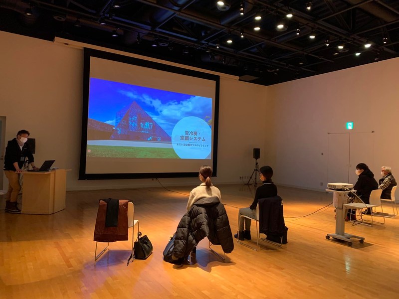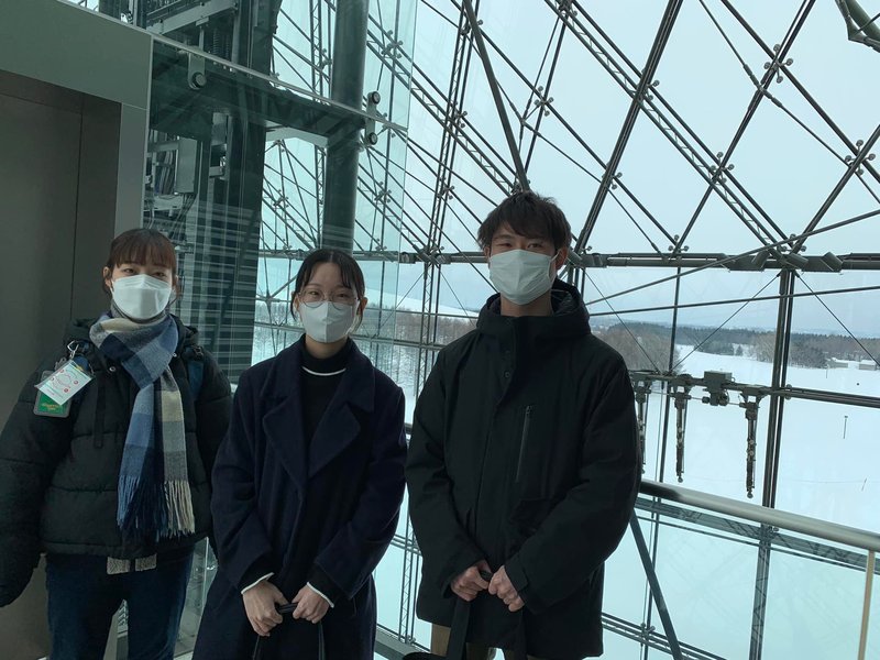 午前はモエレ沼公園ガラスのピラミッド「雪冷熱について」現地視察、インターン生たちは未来自治体政策に是非札幌ならではの雪を取り上げます。