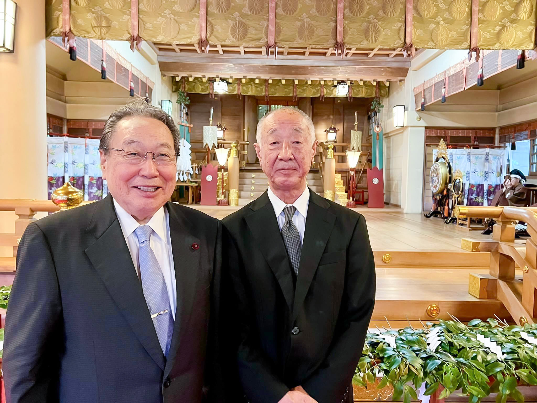 ホーム>政党・政治家>三上 洋右 (ミカミ ヨウスケ)>豊平神社のお祭りに猿賀神社の山谷宮司にお詣り頂きました。