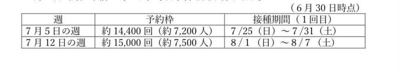 2 ワクチン供給状況を踏まえた7月5日以降の当面の予約枠について
