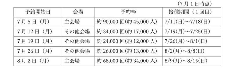 ※ 上記以降の予約枠は、ワクチン供給量を踏まえて、随時、公表します。