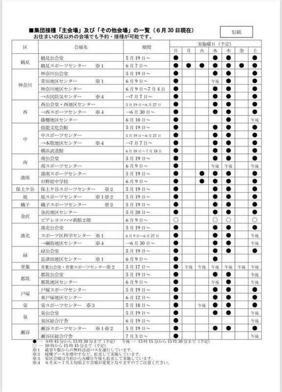 本日(7/1)、横浜市より「新型コロナウイルスワクチンの供給量及び7月5日以降の当面の予約枠」について記者発表されましたので、お知らせします。