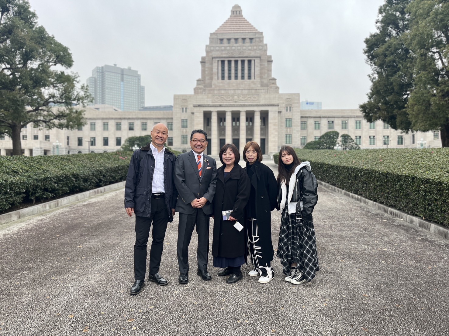 正門前で国会見学に来てくれた中学の同級生たちと合流して国会議事堂をバックに記念撮影など。