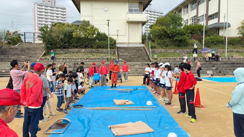 高倉中学の陸上部、サッカー部、高倉台小学校の野球チームの皆さんが参加して賑やかな防災訓練でした。最後に炊き出しのカレーライスを食べて終了しました。
