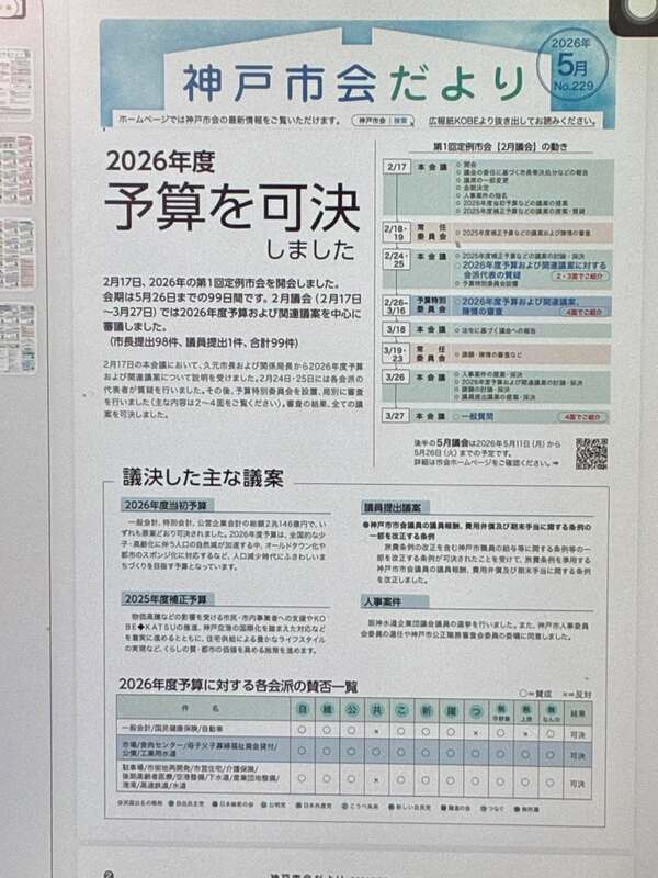 ホーム>政党・政治家>大井 としひろ (オオイ トシヒロ)>🌿神戸市須磨区から発信☘️先程、神戸市会事務局よりメールがあり、現在配布されている市会だより5...