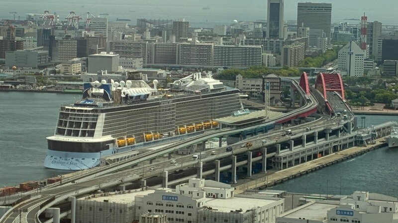 また、神戸港には豪華客船 Ovation of the Seas(168,666トン)が、本日午前6時30分に神戸ポートターミナル に入港しました。