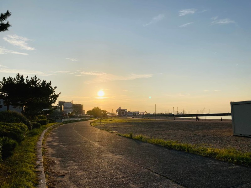 只今、須磨海浜公園です。 神戸市須磨区から発信! 早朝のラジオ体操に参加しています。須磨海岸には、大勢の方々が、ジョギングや散歩などでお越しです。 今日も気持ち良い汗をたっぷりかきました。