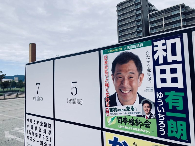 衆議院選挙が公示され兵庫県第3選挙区(須磨区・垂水区)からは和田有一朗候補が日本維新の会公認で立候補しました。